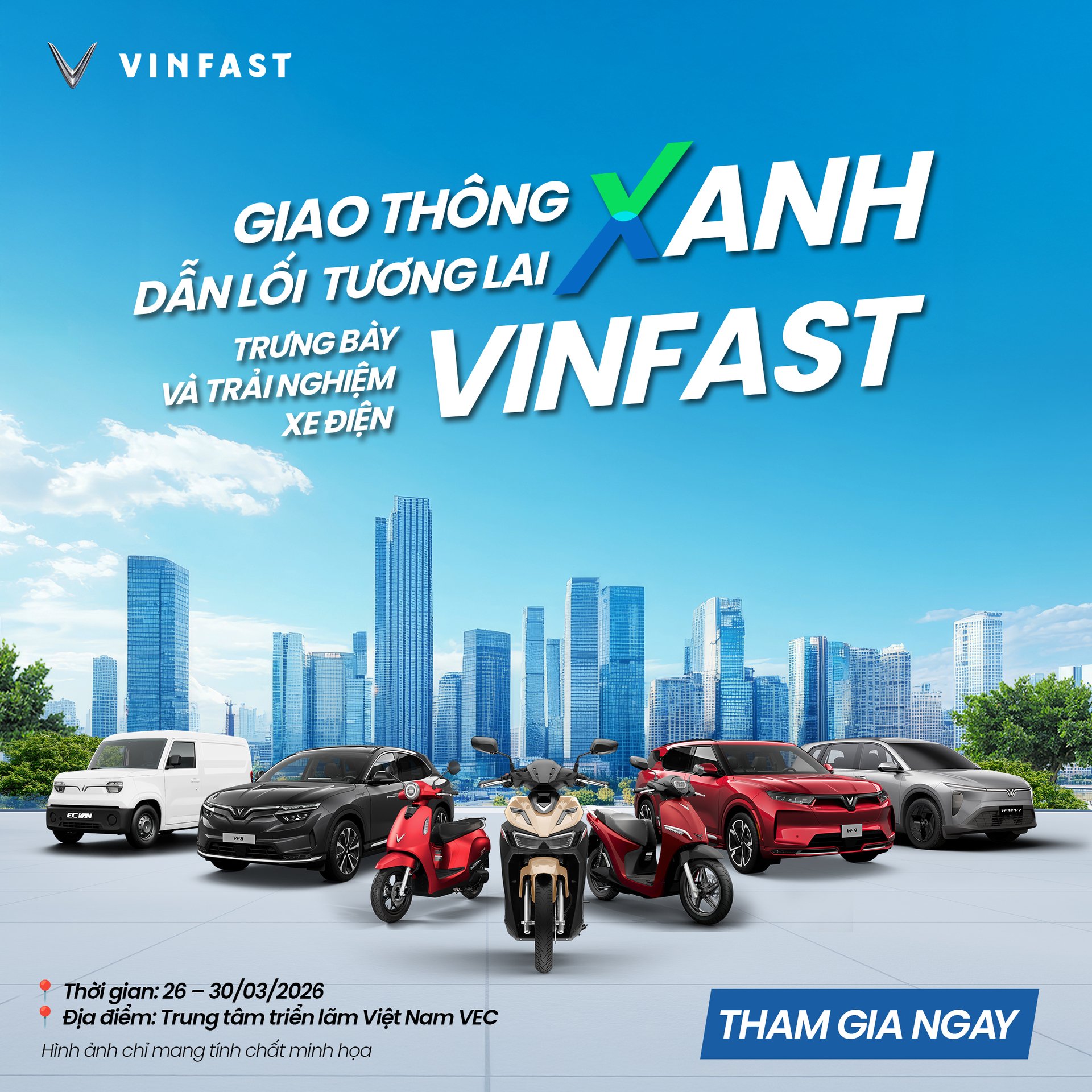 Hướng tới xu hướng giao thông xanh và phát triển bền vững, VinFast tham gia Triển lãm Quốc tế VietBuild Hà Nội 2026, mang đến không gian trưng bày và trải nghiệm các dòng ô tô điện và xe máy điện hiện đại, đồng thời tạo cơ hội để khách hàng tham quan trực tiếp chiêm ngưỡng, lái thử và cảm nhận những giá trị của xu hướng di chuyển xanh.